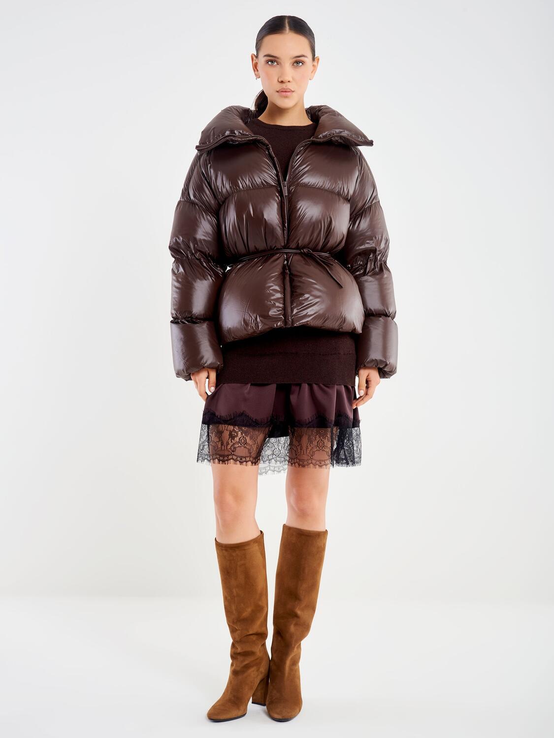 Vicolo Piumino Con Cintura Marrone